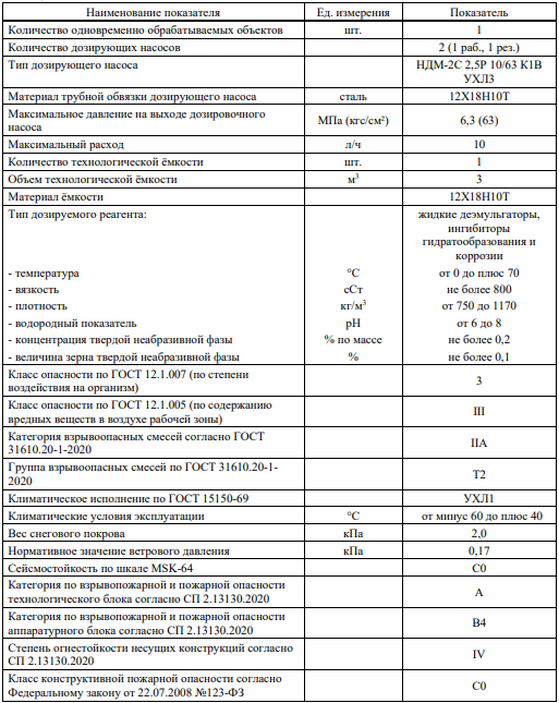 The unit is designed for the dosed introduction of liquid reagents, such as demulsifiers, hydrate formation and corrosion inhibitors, into oil and gas collection, transportation and treatment systems.